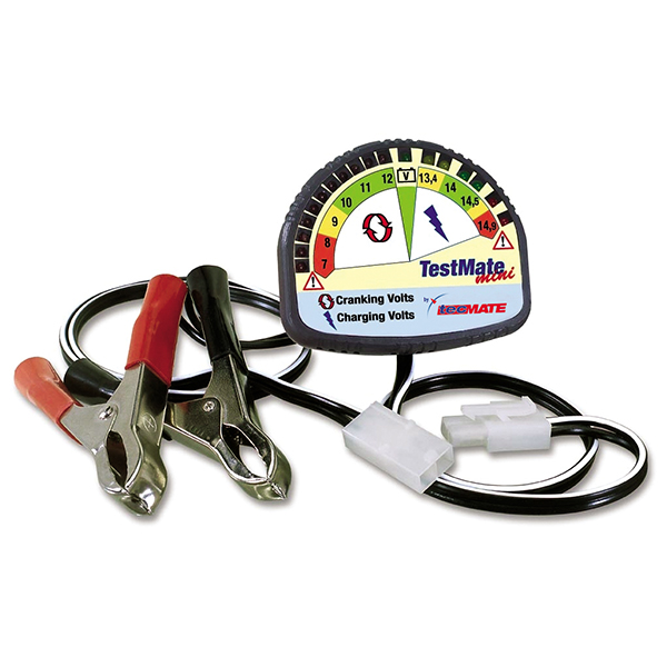 This compact, easy to use tester is ideal For quick diagnosis without having to remove wiring. Simply connect the included harness to the battery in question and begin testing. With the ignition off, battery voltage is displayed. When the starter is engaged, cranking voltage is displayed. With the engine running, charging voltage at various R.P.M.’s can be observed, indicating potential regulator and alternator trouble. Easier to read than a multimeter, the Testmate is small enough to use anywhere with no need to switch between different scales. Complies with California’s NEW Appliance Efficiency Program.
