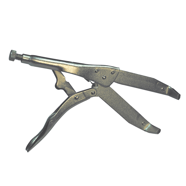 Clutch Holding Tool Locking Vise Type Vise type tool will hold inner clutch hubs, gears, sprockets and flywheels (using pins opposite jaws side). Carbon steel with heat treated jaws and nickel finish. Max. 130MM(5) jaw opening.
