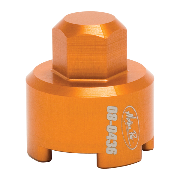 This tool fits 2007 and 2008 KTM with white power 4860 MXMA CC forks, and is designed for removing and installing the compression valve assembly from the fork cap. Tool also allows you to properly torque the compression valve assembly during installation. 17MM head, made of 6061 T-6 aluminum.