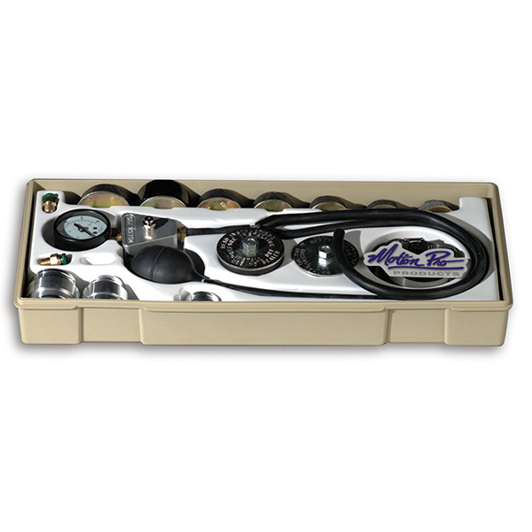 MOTION PRO CRANKCASE PRESSURE TESTER An accurate method For checking air leaks on two-stroke engines. Complete with air pressure gauge, pump-up bulb and most fittings and adapters For single and multi-cylinder two-cycle engines.