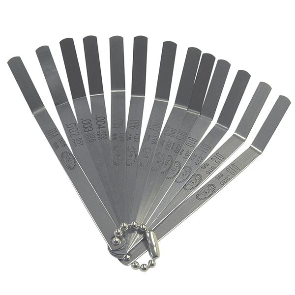 Sizes on blades listed in both decimal and metric. Fourteen offset blades: .002” (.051MM), .003” (.076MM), .004” (.102MM), .005” (.127MM), .006” (.152MM), .007” (.178MM), .008” (.203MM), .009” (.229MM), .010” (.254MM), .011” (.274MM), .012” (.305MM), .013” (.330MM), .014” (.356MM)