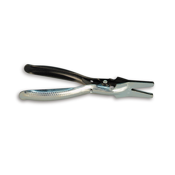 HOSE REMOVAL PLIERS for easy removal of 4MM to 14MM vacuum and fuel hose. Engage the barb with the sharpened jaw For grip. Squeeze and the hose is easily pushed off by the silver jaw. Allows one handed removal. Sold each.