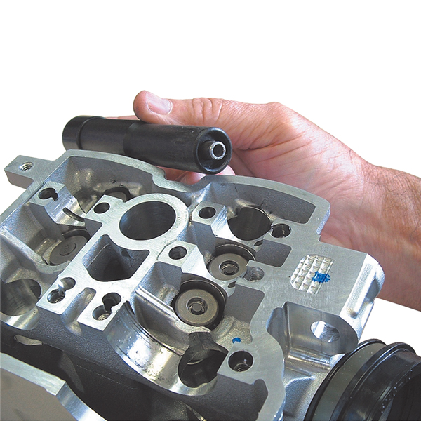 KWIK-LOADER VALVE KEEPER TOOL SET The Kwik-Loader cuts valve installation and removal time drastically. It’s compact and easy to use design replaces bulky C-clamp style compressors. The white tool is used For keeper removal, simply slide it over the spring pack/retainer and use a mallet to apply downward pressure to the collar. Remove the tool and keepers are ready to take out. To re-assemble, put valve into the guide, install the springs, and place retainer and keepers in position. Using the black tool, hand pressure is sufficient to complete the installation process. It’s easier and faster than automotive style compressors, and you can even change valve stem seals without removing cylinder heads. Simply apply air pressure to the assembled head via the spark plug hole, and follow the same procedure above. Save time and make more money, contact your representative For details.