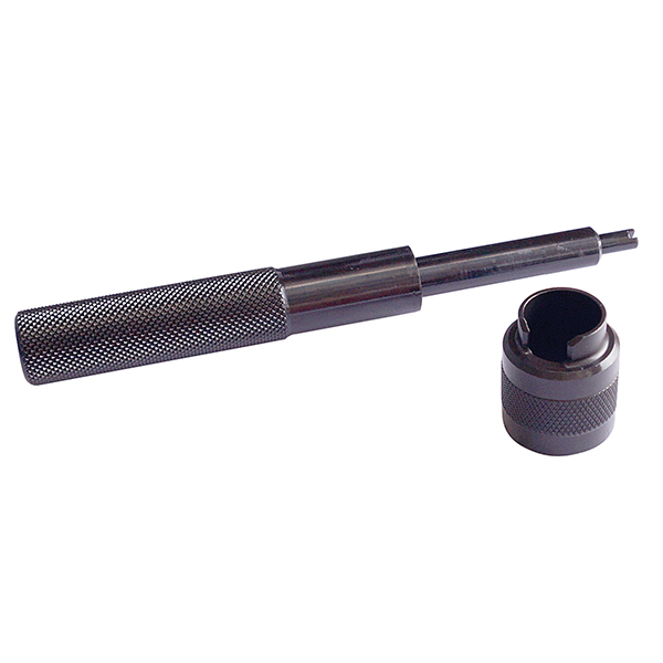 Able to install retaining ring at the piston area. Installs round circle clip rings in one step. Short cone housing with notch and drift pin with notch. Application: BigTwin 83-15, All Sportster models 85 to present. Buell 87-10 (not 1125R models).