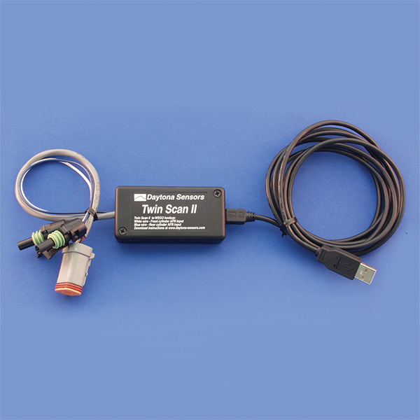 The new Twin Scan II provides diagnostic capabilities not found in any other available tools and is especially useful For diagnosing hard to find intermittent trouble codes. Minimum PC requirement is a 300 MHz Pentium running Windows 98/ME/XP/Vista. Features: • Reads and clears diagnostic trouble codes from ECU (engine control unit), TSSM (turn signal/security module), speedometer, and tach. • Real time display of engine data on instrument panel type display. • Built-in data logging stores up to an hour of data. Includes two analog inputs For air/fuel ratio (AFR). Twin Scan II units can be upgraded to Twin Scan II+ For use as tuning aid, see pn 35-2249 below. Twin Scan II For 2001-2011 fuel injected models with Delphi® system (incl. V-Rod®) and 03-06 carbureted models with 12 pin ignition module.