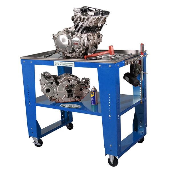 MOBILE BENCH Use as a combination workbench, tear-down table and tool storage facility. Table comes with heavy duty 4” casters (2 rigid & 2 locking swivel). The Table top features a drain hole. Shipping weight: 170 lbs