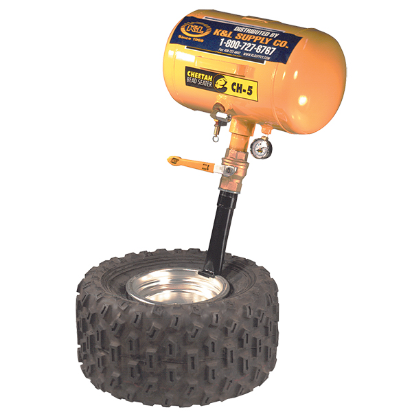 5-gallon Bead Seater with ASME certified tank for commercial use on ATV and motorcycle tires. Seats tire beads easily.